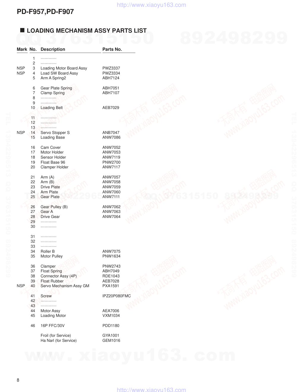 PEL1095(V701: DISPLAY BOARD ASSY) :FOR PD-F957