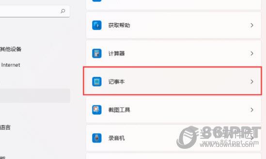当前路径为:应用>默认应用程序,找到并点击记事本;
