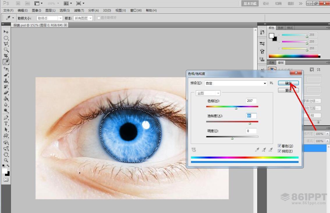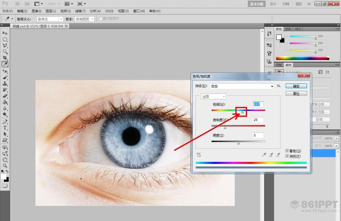 以上是PS改变眼睛颜色的方法。操作时,看看你改变瞳孔颜色后是什么样子。你也可以通过这种方式找到合适的化妆品隐形眼镜颜色!