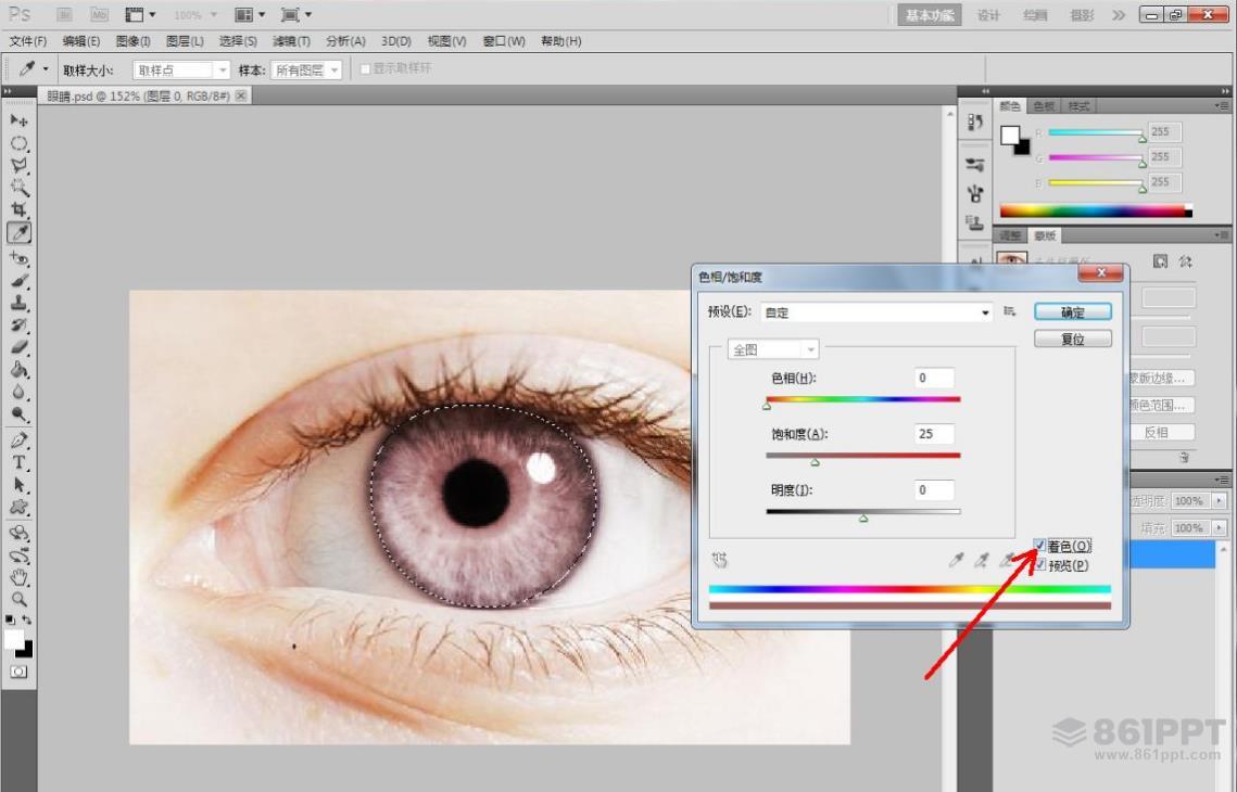5.勾选【着色】