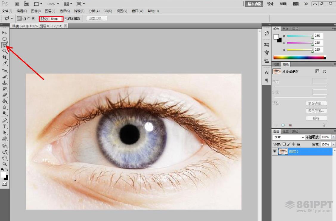 2.点击【多边形套索工具】将羽化值设置为20