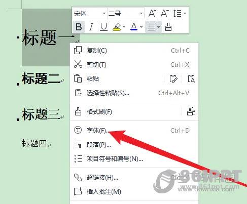 点击菜单中的字体选项。