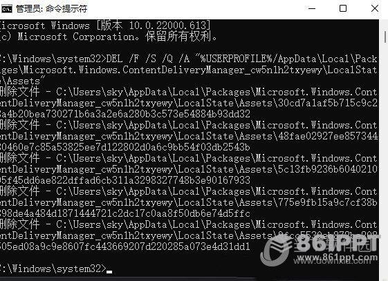 DEL /F /S /Q /A “%USERPROFILE%/AppData\Local\Packages\Microsoft.Windows.ContentDeliveryManager_cw5n1h2txyewy\LocalState\Assets”