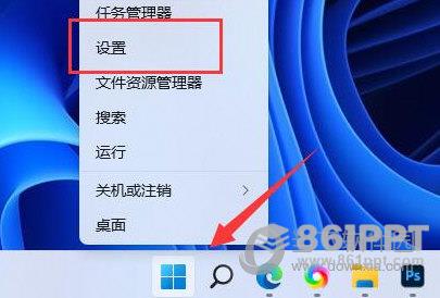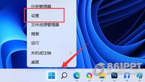 按键盘 Win + X 组合键,或右键单击任务栏底部的Windows标志,在打开的隐藏菜单项中选择[设置];