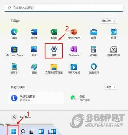 按 Win 键,或点击任务栏上的开始图标,找到并点击打开的固定应用程序中的[设置];