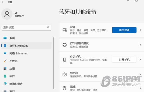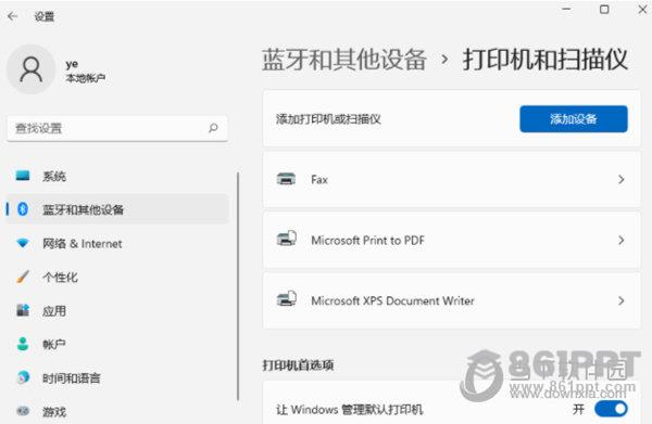设置窗口,点击左侧的蓝牙和其他设备,点击右侧的打印机和扫描仪(首选,难以回答);