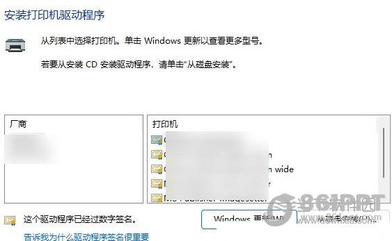 7、系统将自动搜索驱动程序。如果找不到,打开安装打印机驱动程序的窗口,点击[从磁盘安装],选择准备好的驱动程序。打印机驱动程序最好在相应的打印机品牌官方网站上下载;