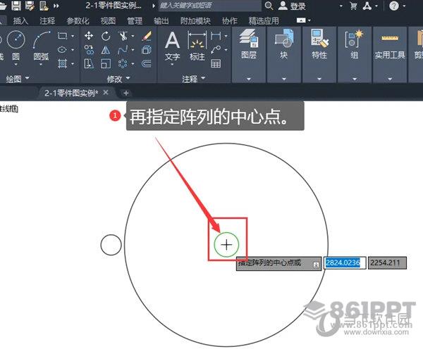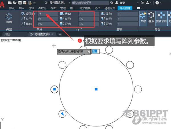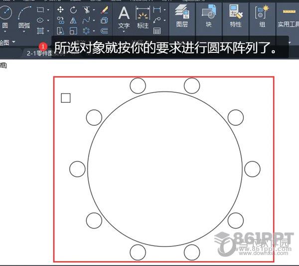 要创建环形阵列,点击工具栏”环形阵列“按钮。