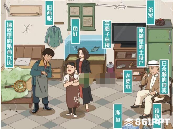 最先点一下旧西装、玻璃缸、等离子电视机、冰箱里面土特产品、铁饭盒、冷冻鱼,开启抽屉柜寻找老婆本