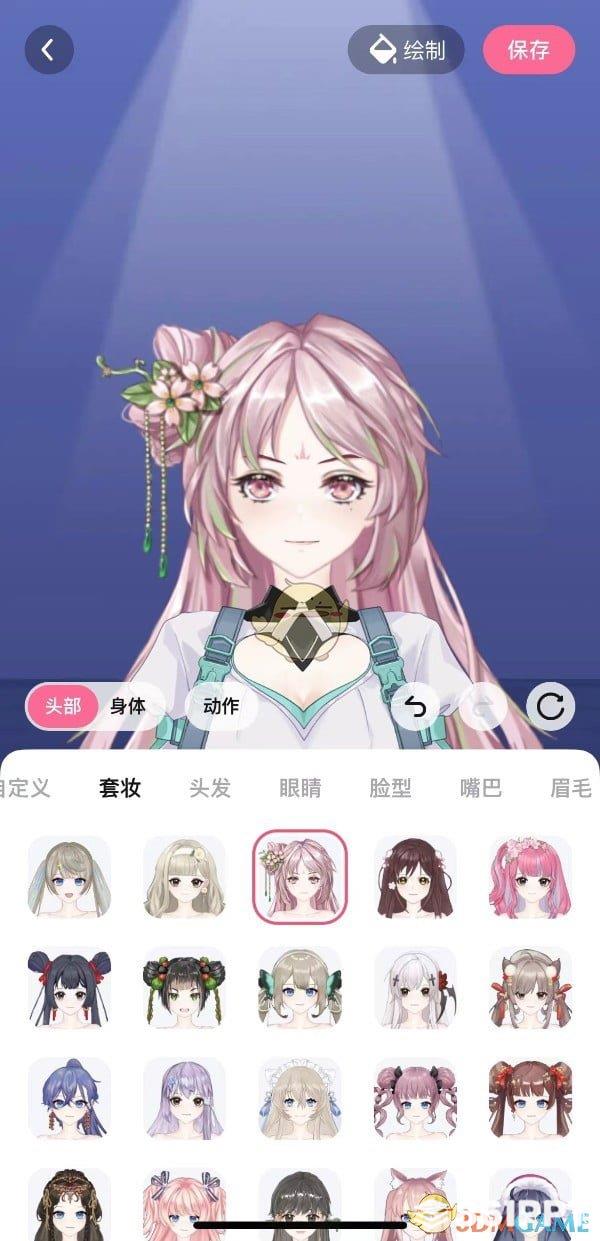 自定(能自己制作打扮,但是目前素材内容暂未开放)、手机软件带有的套服、头顶部、双眼、脸形、嘴、眼眉、妆面、脸饰、发饰;