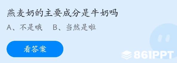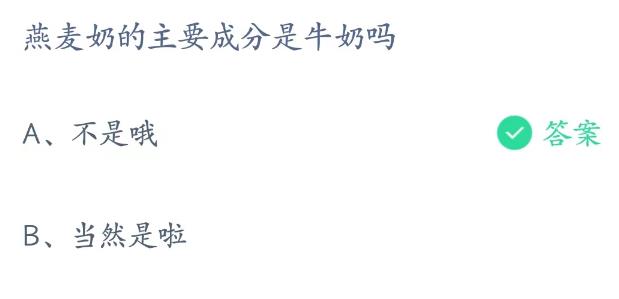 以上就是关于小编为大家整理的:燕麦奶主要成分是牛奶吗?支付宝钱包解题4月15日回答2023蚂蚁庄园。想要了解更多全新正确答案的 小伙伴们一定千万不要错过!