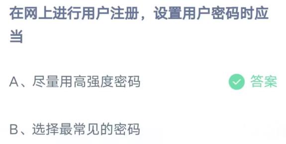 2023支付宝钱包蚂蚁庄园4月15日的题早已升级了,今日的题为:在线上进行新用户注册设定账户密码时应该?尽量用高韧性登陆密码还是选比较常见的登陆密码呢?正确答案是哪些,很有可能有很多小伙伴或许还不是很清楚。小编就给大家带来了标准答案共享,希望能够帮助到你。