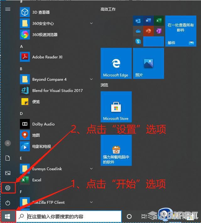 1、点一下电脑屏幕左下方的“逐渐”选择项,点击“设定”选择项。