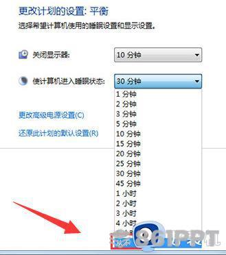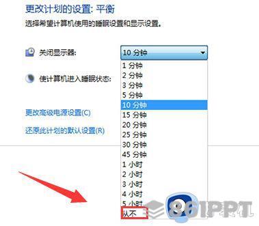 6、变更完关闭显示器设定后还要对使电子计算机进到休眠状态选择项开展变更,相同的都将选择项改为从来不。