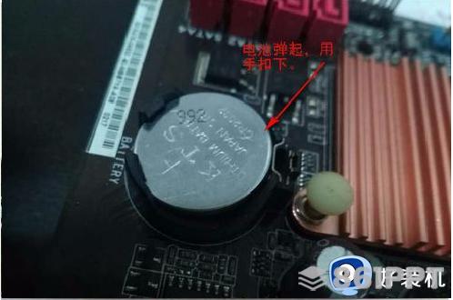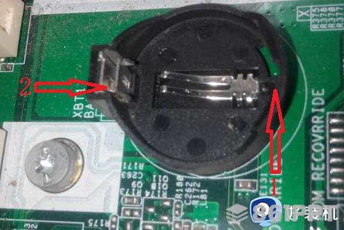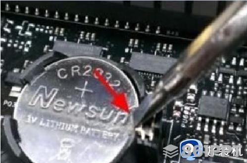 2、用平一点的一种手段压着CMOS电池座里的卡榫。