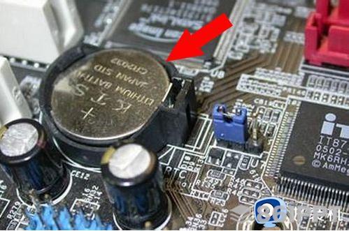 1、在电脑主板南桥周边,有一个反面有减号,孔径在两个厘米左右的银色小圆环钮扣电池。