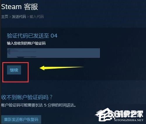 5、输入手机中收到的验证码,点击“继续”按钮可以更改绑定的邮箱。
