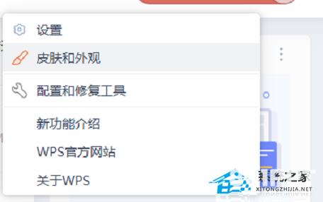 2、点击下面选项列表中的选项“皮肤和外观”。