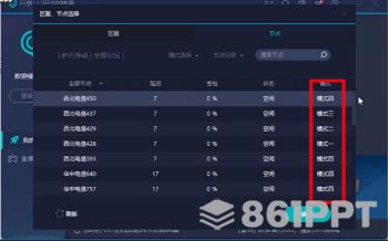 在节点列表中可以看到四种模式,连接速度和终止速度快,模式一需要防火墙支持,模式二需要修改注册表。