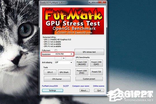 3、FurMark软件的界面将弹出。红框标记中的值表示测试中的分辨率。如果您的计算机性能不是很好,最好将其设置为800×如果您不知道如何更改其他设置,则默认不会更改。如果您想在软件中调整设置更准确的值,也可以在上一步点击其中“检查使用方法”进行查看;