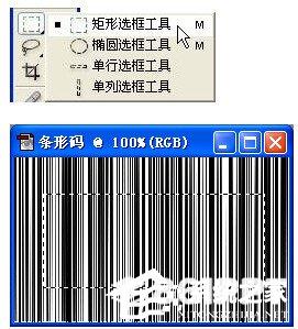 8、条形码纹理的底纹已经基本完成。我们需要在条形码底部适当的地方添加文本,以完成最终效果。选择工具箱中的工具箱,在图像中选择需要为文本预留空的区域,按键盘上的Delete键删除相应的区域。执行|命令,或按下快捷键Ctrl+D,取消选区