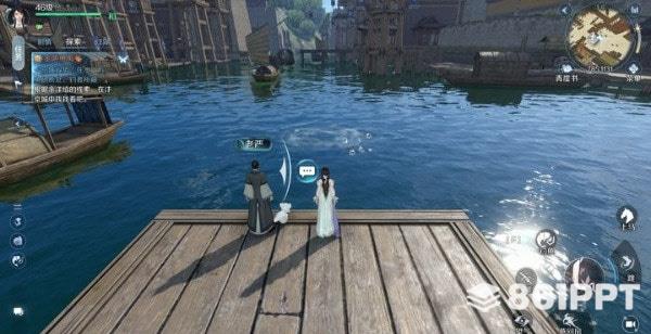 2、赶到钓鱼池旁,在卞京部位(784,1132)上对着漩涡处垂钓就可以完成支线任务(必须打开垂钓真实身份)。
