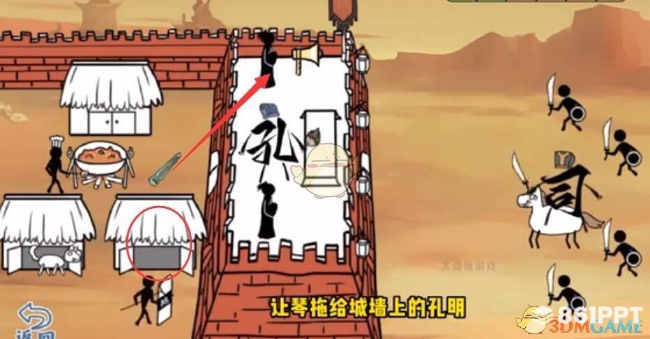 1、这一关是有名的三国诸葛亮摆空城计将诸葛吓跑,大伙儿用叫嚣和美女都不可以吓跑诸葛。