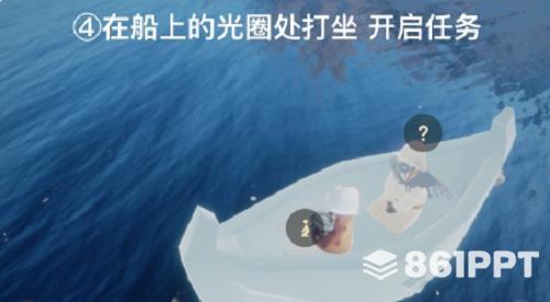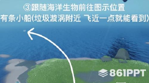 3.追随海洋动物前去图例部位一条小帆船,废弃物涡旋周边飞近一点就可以看到。