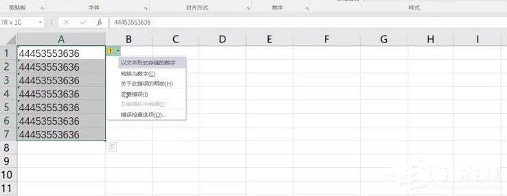 1、Excel表中有几个错误的提示,按住“Shift”键,选择所有数据;
