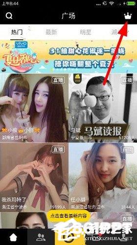1、进入辣椒直播后,点击右上角的皇冠按钮,如下图所示:
