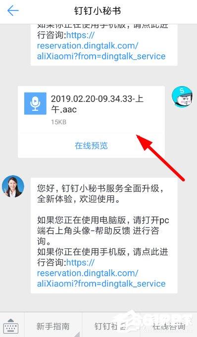 3、而这里以“钉钉”例如,在将录音文件分享到钉钉后,我们进入“钉钉”下载并保存录音文件!